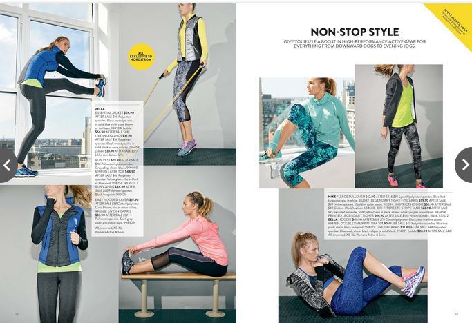 But THIS goal DOES sound appealing. I would like to be able to wear regular sized Zella. Ahhh…this GLORIOUS fabulous athletic wear made and sole by Nordstroms. The soft fabric and catchy designs get me ever time. They make some awesome Plus-Sized clothes now but not nearly as awesome as the regular sized line. I would like to be able to wear EVERYTHING including their jackets which might prove a problem for my boobs. They are BIG and have been since I was 14. no matter…I am going to SQUEEZE my fun bags into some Zella one day…even if I never wear it in public. I would also like to buy an entire outfit that is featured in the Nordstroms catalogue. The whole flipping thing…from the tops to bottoms to shoes to accessories. One day I am going to walk in Nordys, grab a sales person, point to the picture and say “I want this…all of this.” And then I am going to ROCK that outfit. So yeah…not necessarily a concrete pant size but a definite section size…I want to shop in “Woman’s Active” and not “Encore”.