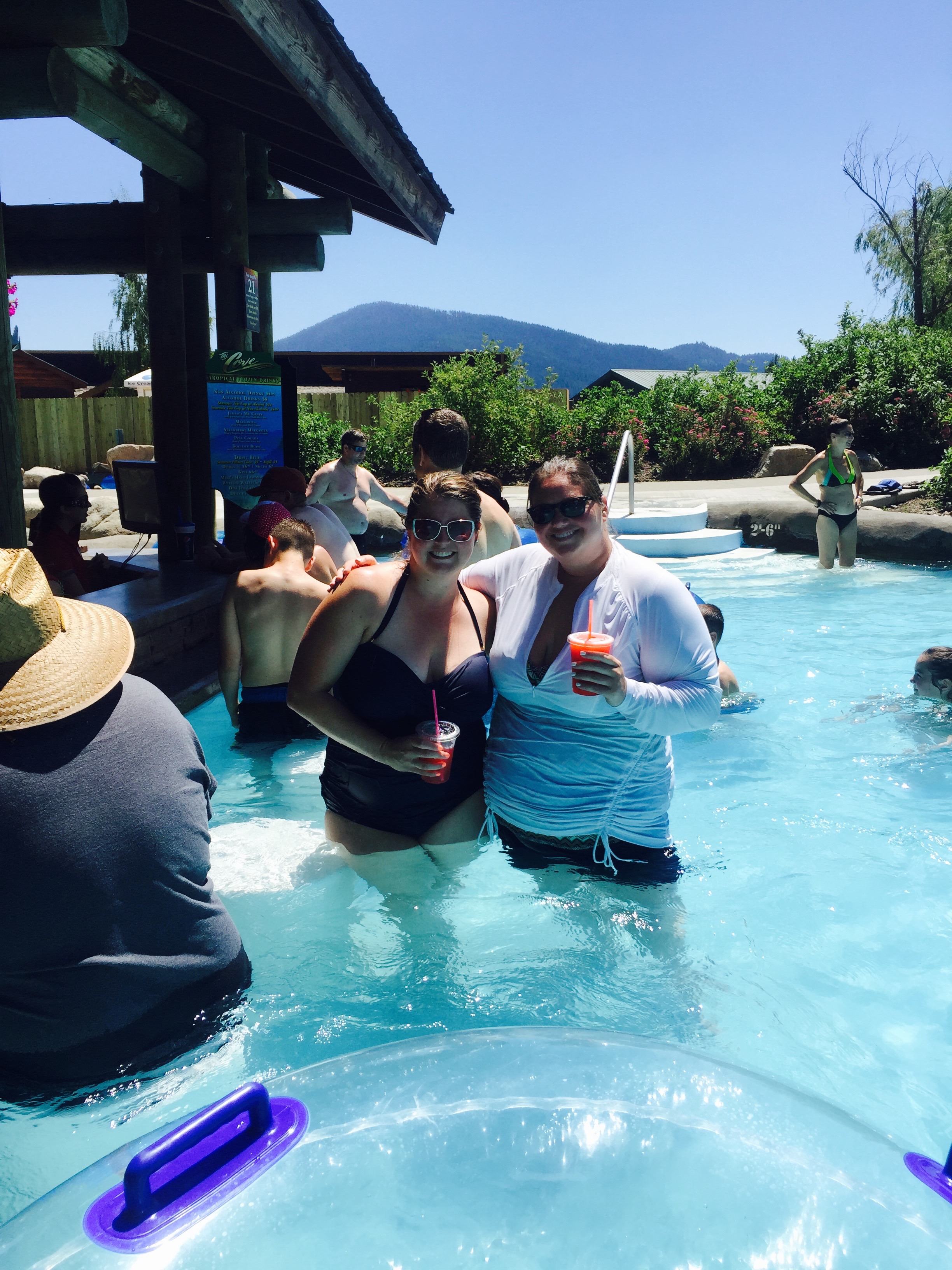 The only downside of the whole trip was the HEAT. When we arrived on Sunday it was 115 DEGREES. That is like desert hot…and they were all camping! We stayed in a hotel…A/C, Wireless…yeah sign me up for that. They have nice big camper trailers with AC but man that did not help when you are cooking and eating and socializing outside. I am NOT a heat person. Unless I am in Hawaii and next to a beach with my swimsuit on I don’t do heat. I was not a happy camper. One day I think I had a touch of heat stroke. It was all I could do to find some shade and sleep it off. The heat drove me to a few bad decisions. The second day in the park it was HOT and FULL SUN…no puffy white clouds and NO shade to really speak of. There is a lazy river with a swim up bar and it was calling me to it’s cool slurppee like adult beverages. I had two and they were DELICIOUS. As Callie would say…BOMB.COM!