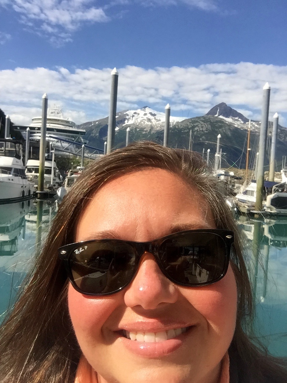 Late July 2015: Alaska. There seems to be a difference in depth between my boobs and stomach region. That is nice to see…my face also appears less round even when smiling. Chipmunk cheeks AWAY!