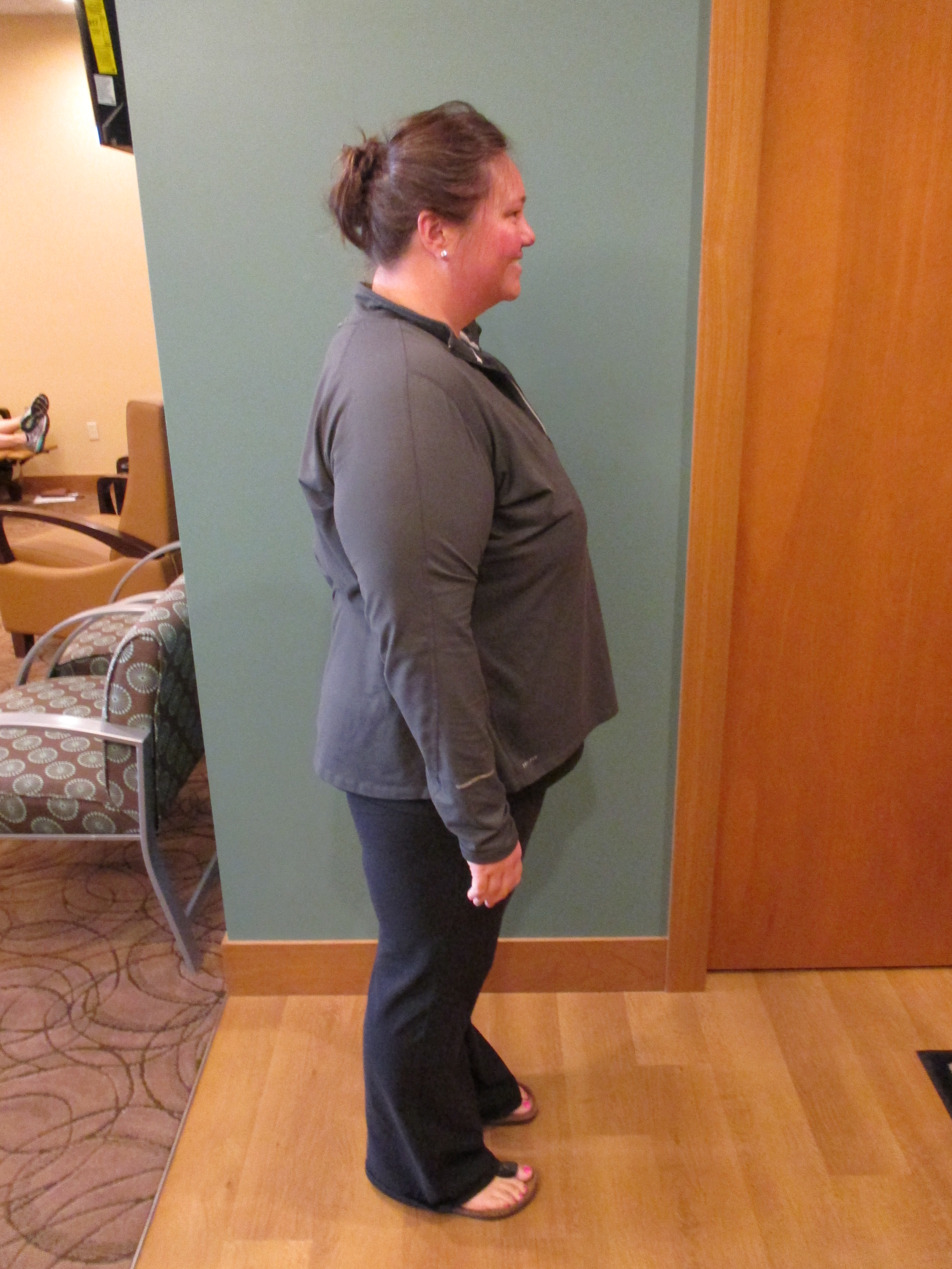 The end of my first 15 weeks of 30/10! I wore the same outfit that I did when I first signed up…I also styled my hair the same. Messy bun is SO in right now…It appears that my neck rolls are getting no so rolley and I think I appear “narrower”. My arms are smaller and my triple chin is maybe down to just a double? Progress.